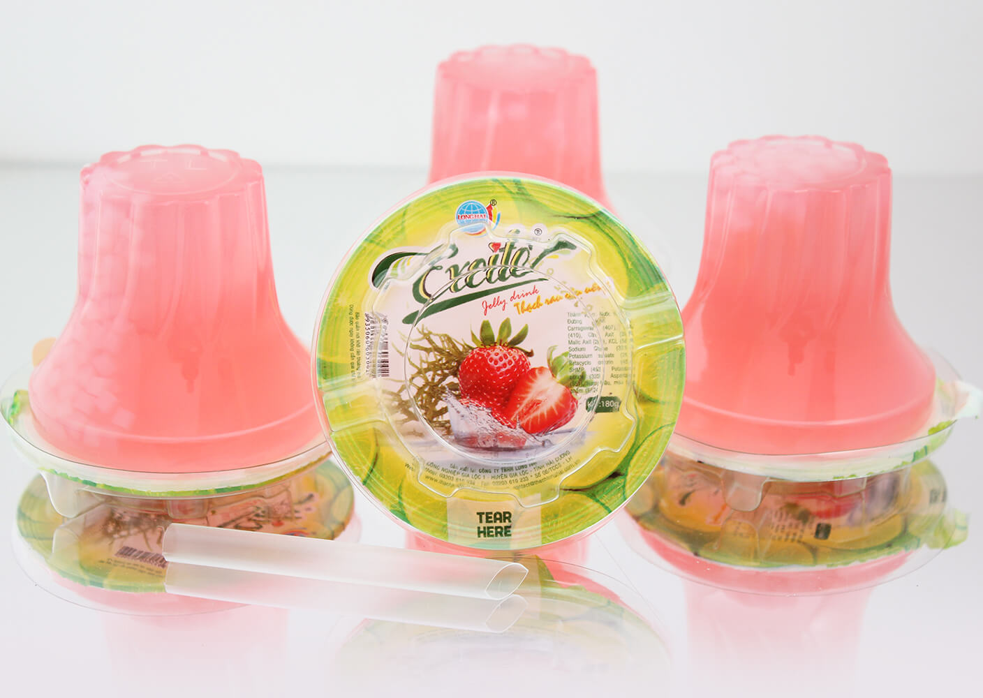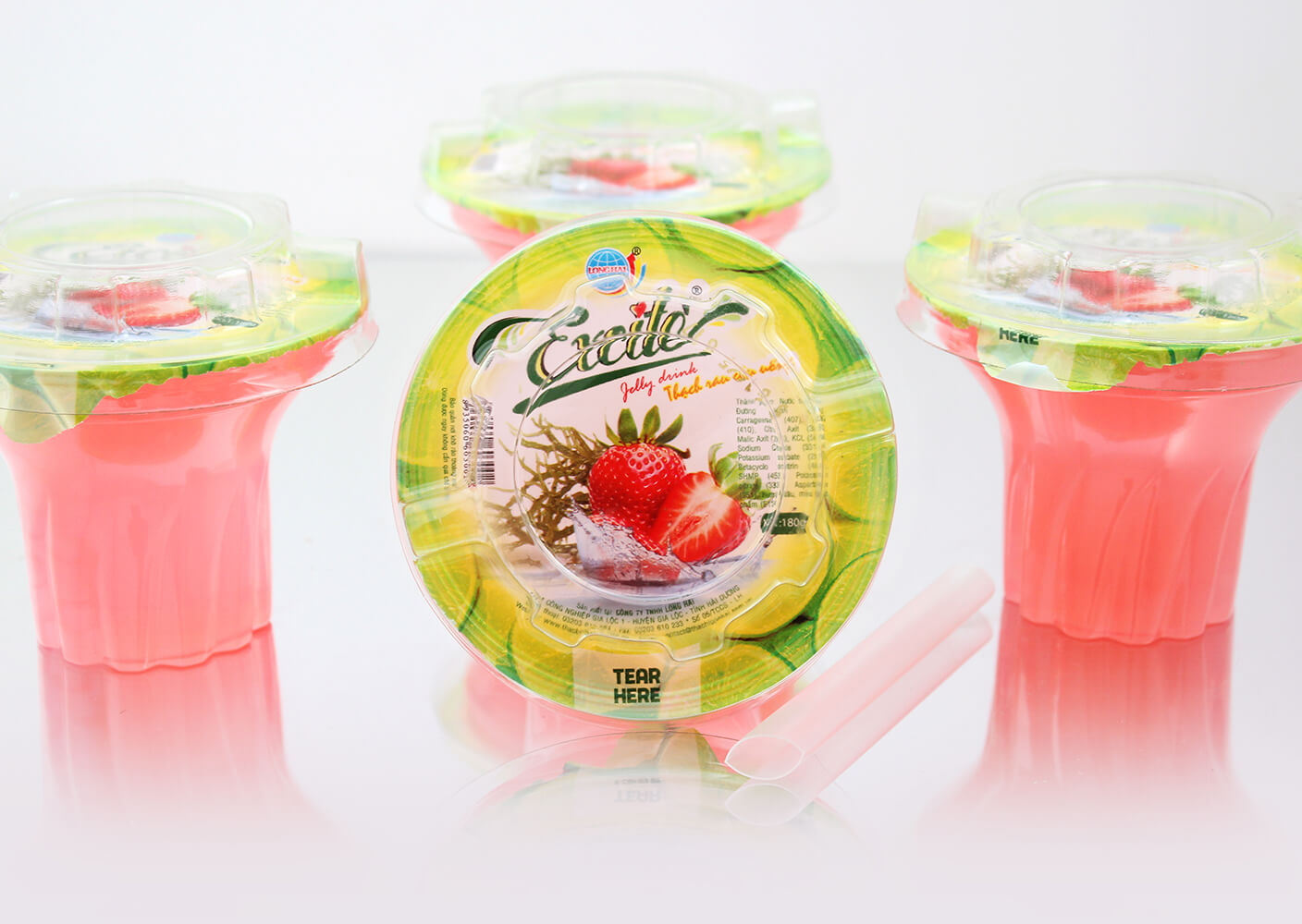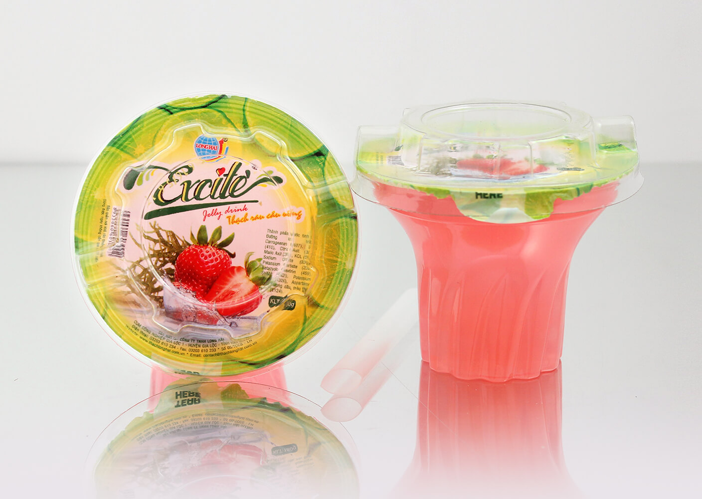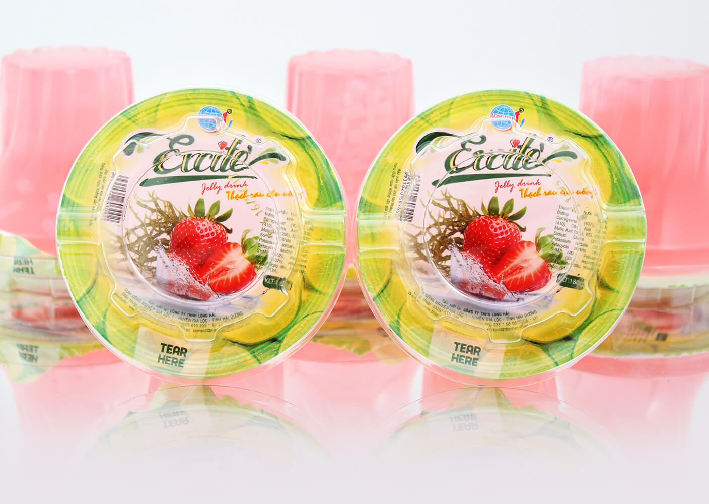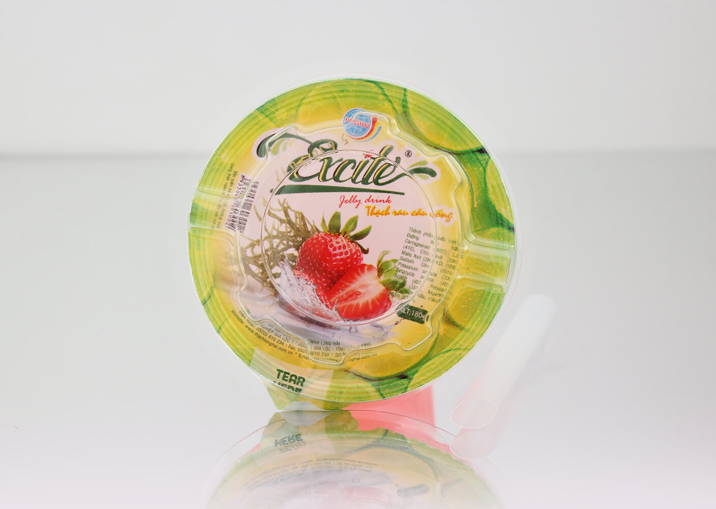 Thạch rau câu uống Excite vị Dâu do công ty Long Hải sản xuất là sản phẩm được sản xuất trên dây chuyền hiện đại, khép kín 100% đảm bảo các tiêu chuẩn vệ sinh an toàn thực phẩm.