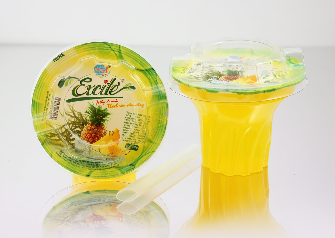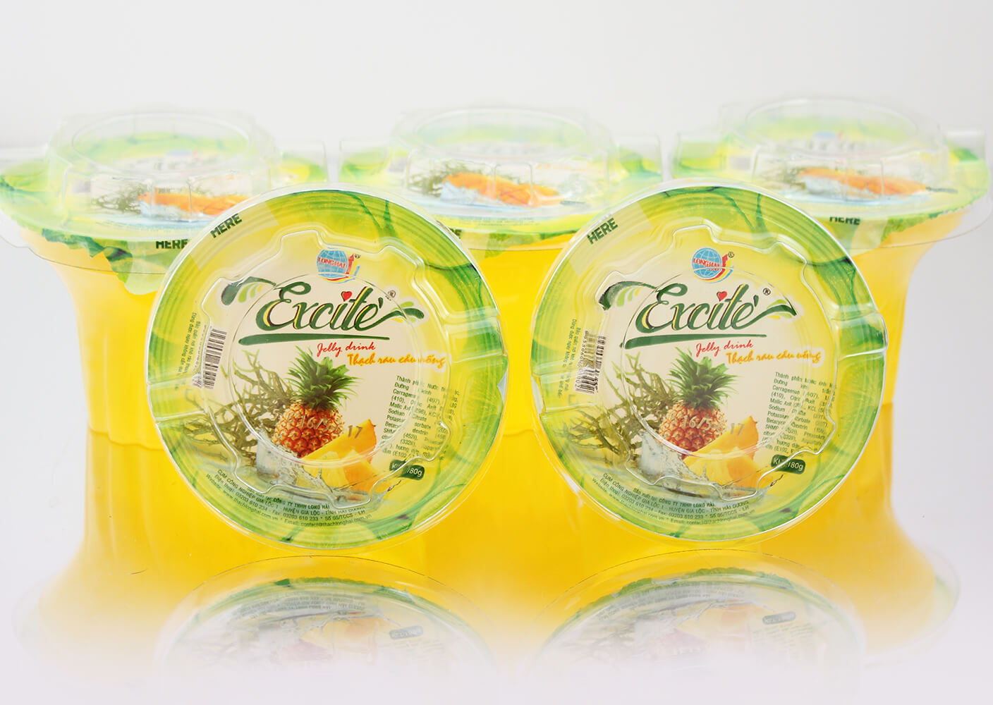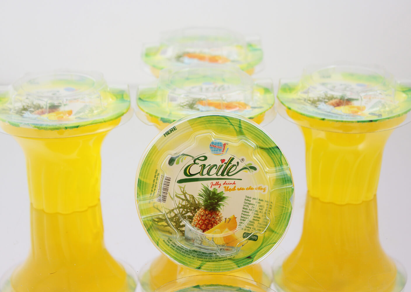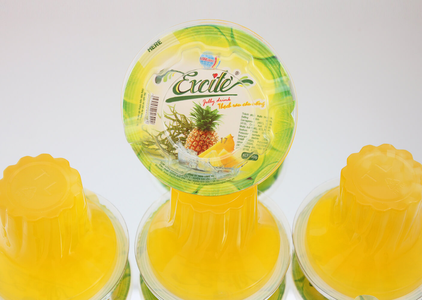 Thạch rau câu uống Excite vị Dứa do công ty Long Hải sản xuất là sản phẩm được sản xuất trên dây chuyền hiện đại, khép kín 100% đảm bảo các tiêu chuẩn vệ sinh an toàn thực phẩm.
