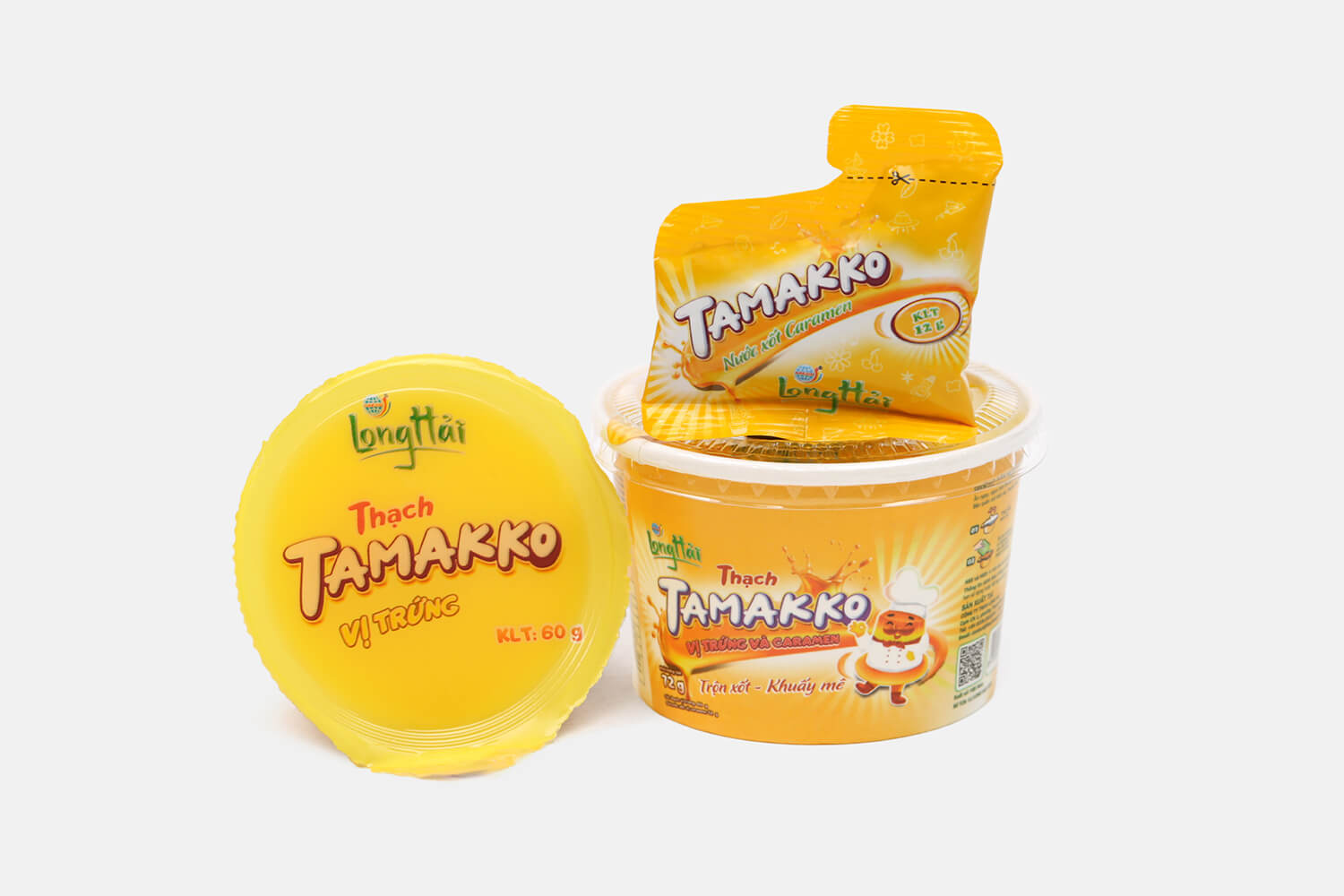 Công ty TNHH Long Hải chính thức giới thiệu đến người tiêu dùng Cốc thạch Tamakko vị trứng và caramen – sản phẩm hoàn toàn mới, lần đầu tiên xuất hiện trên thị trường, đánh dấu bước tiến sáng tạo trong dòng sản phẩm thạch ăn liền của Long Hải.