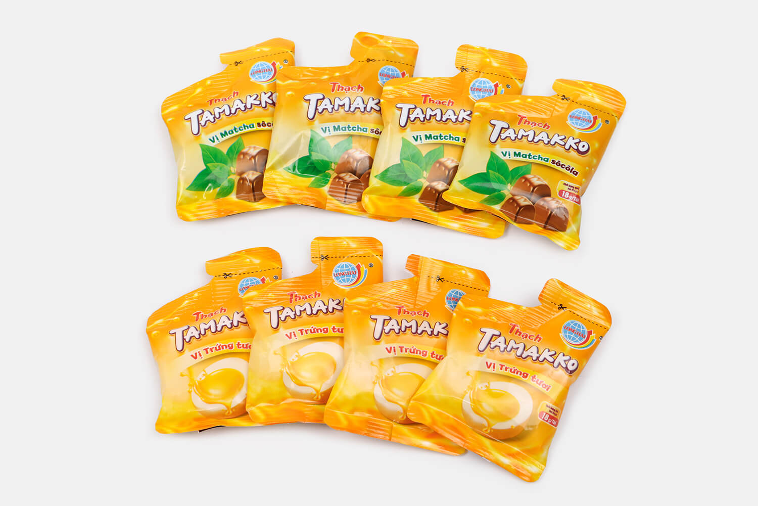 Lấy cảm hứng từ hương vị quen thuộc gắn liền với tuổi thơ, Tamakko Long Hải không chỉ đơn thuần là một món ăn vặt, mà còn là một trải nghiệm thưởng thức đầy thú vị và khác biệt. Sản phẩm là sự kết hợp hài hòa giữa túi thạch vị trứng tươi mềm mịn, béo nhẹ cùng với vị matcha socola.